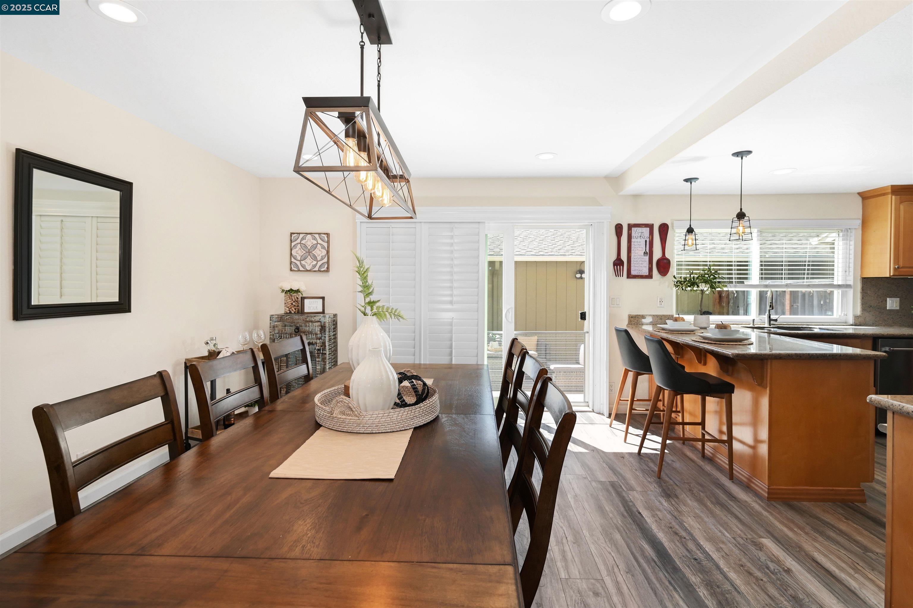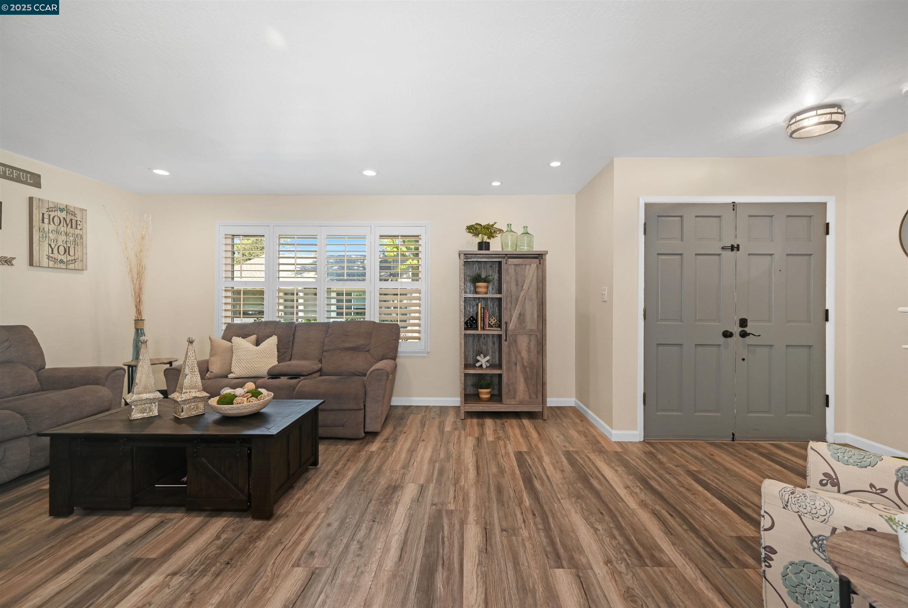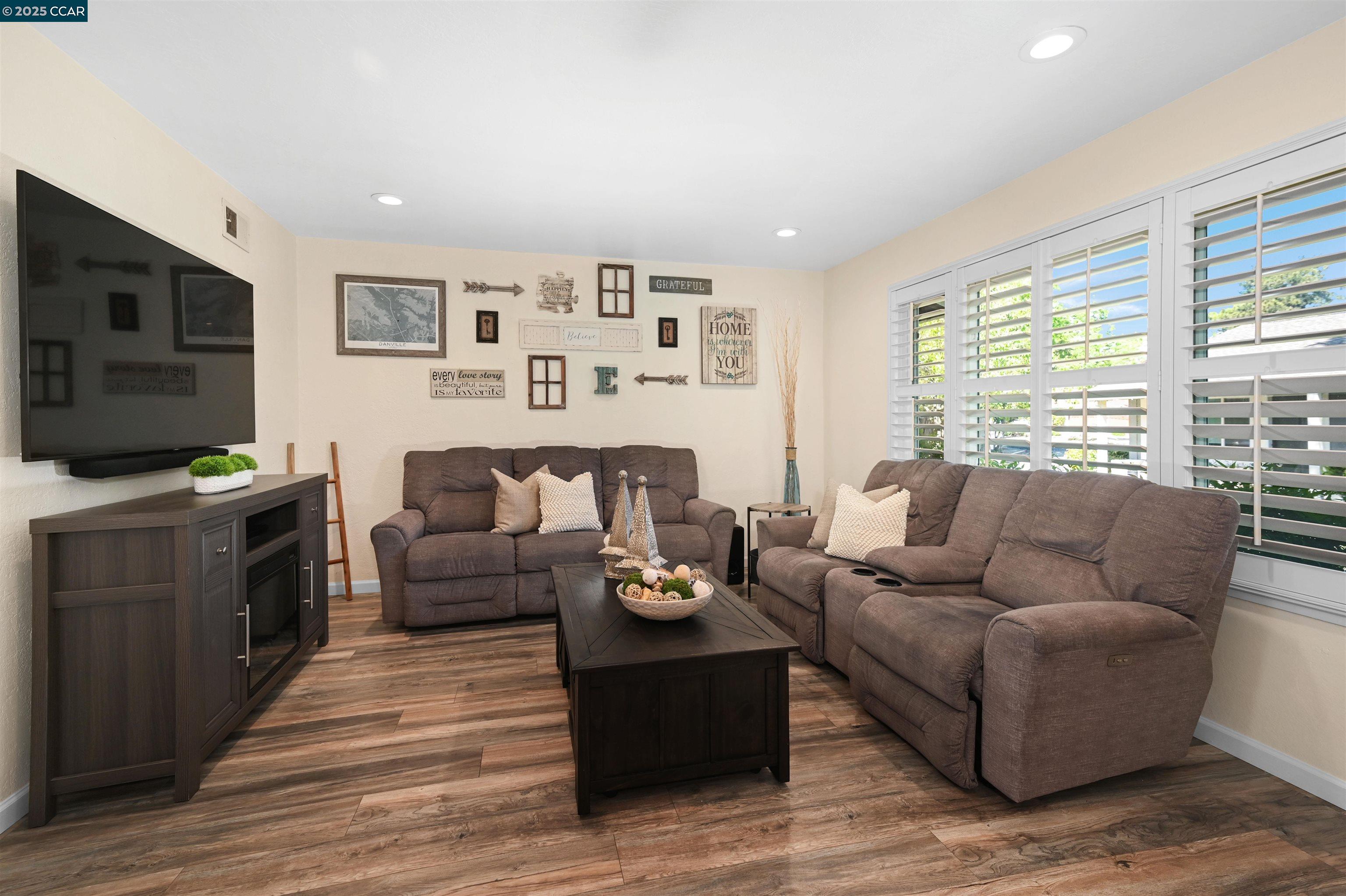 If you are ready to enjoy the magical Danville lifestyle, this inviting FOUR bedroom townhome located in the popular Greenbrook neighborhood is a great place to start! The gorgeous remodeled kitchen features gas stove, wine fridge, large pantry and opens to a spacious eating area. From the updated baths to the beautifully finished 2 car garage, you will LOVE the trending finishes throughout. Luxury vinyl plank floors downstairs, wooden shutters, custom stair banister, private patio, upgraded lighting and 1,717 square feet of living space - a great price point for so much! One bedroom used as craft room - closet easily replaced. Enjoy 2 community pools, tennis, pickleball and acres of greenbelts. Conveniently located close-in to charming downtown Danville, award-winning schools, nature and parks. Easy access to the ironhorse trail and a fantastic commute location.