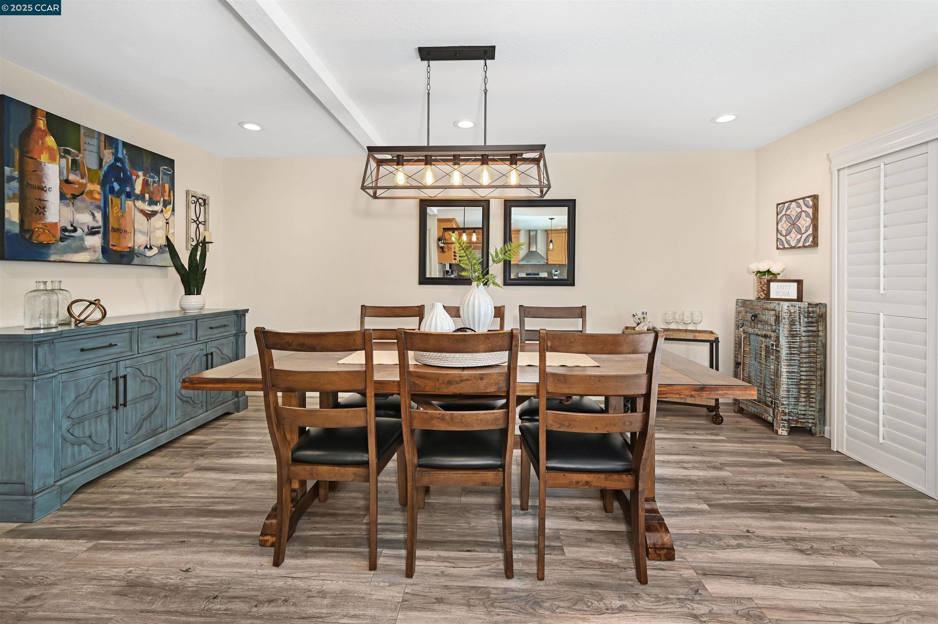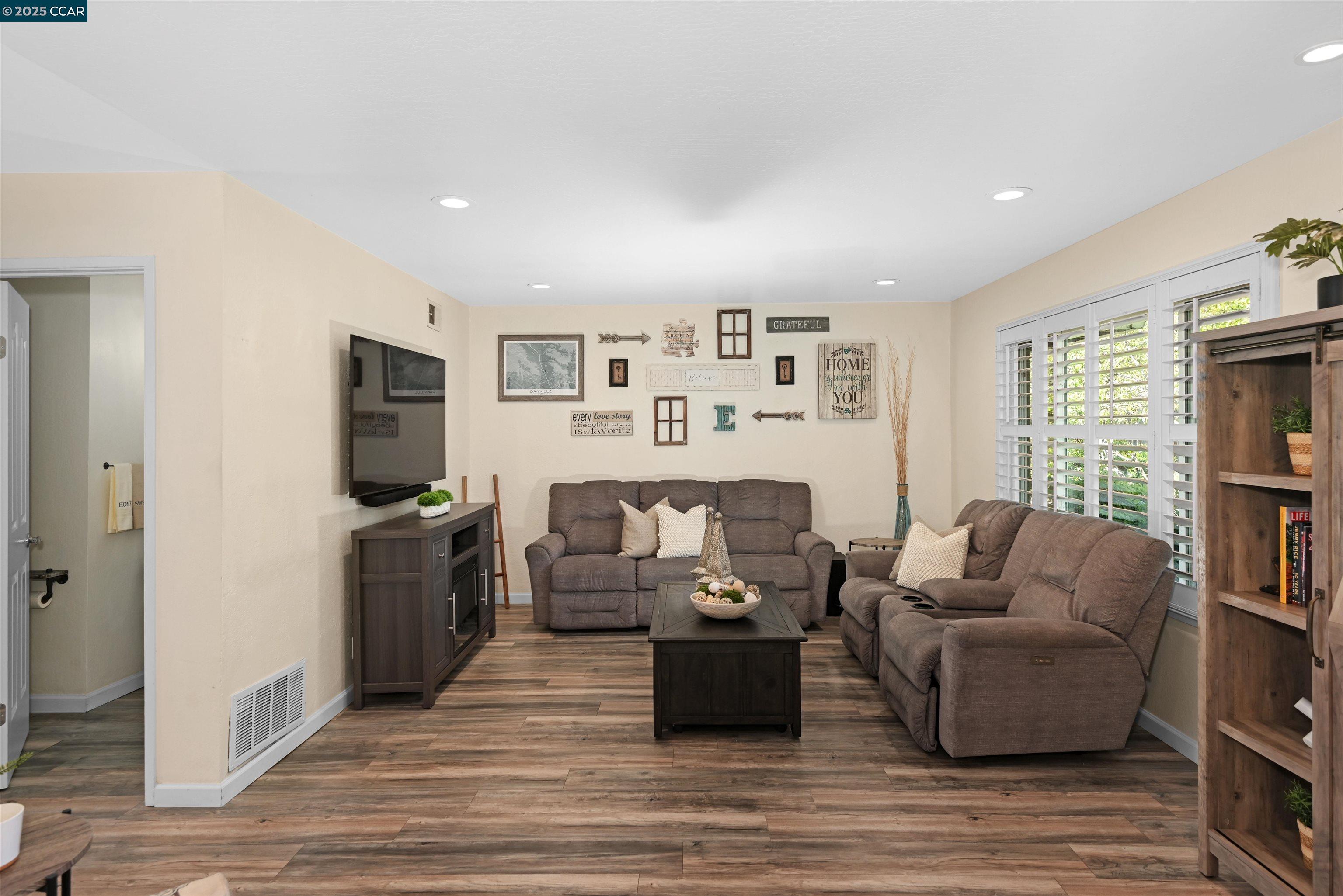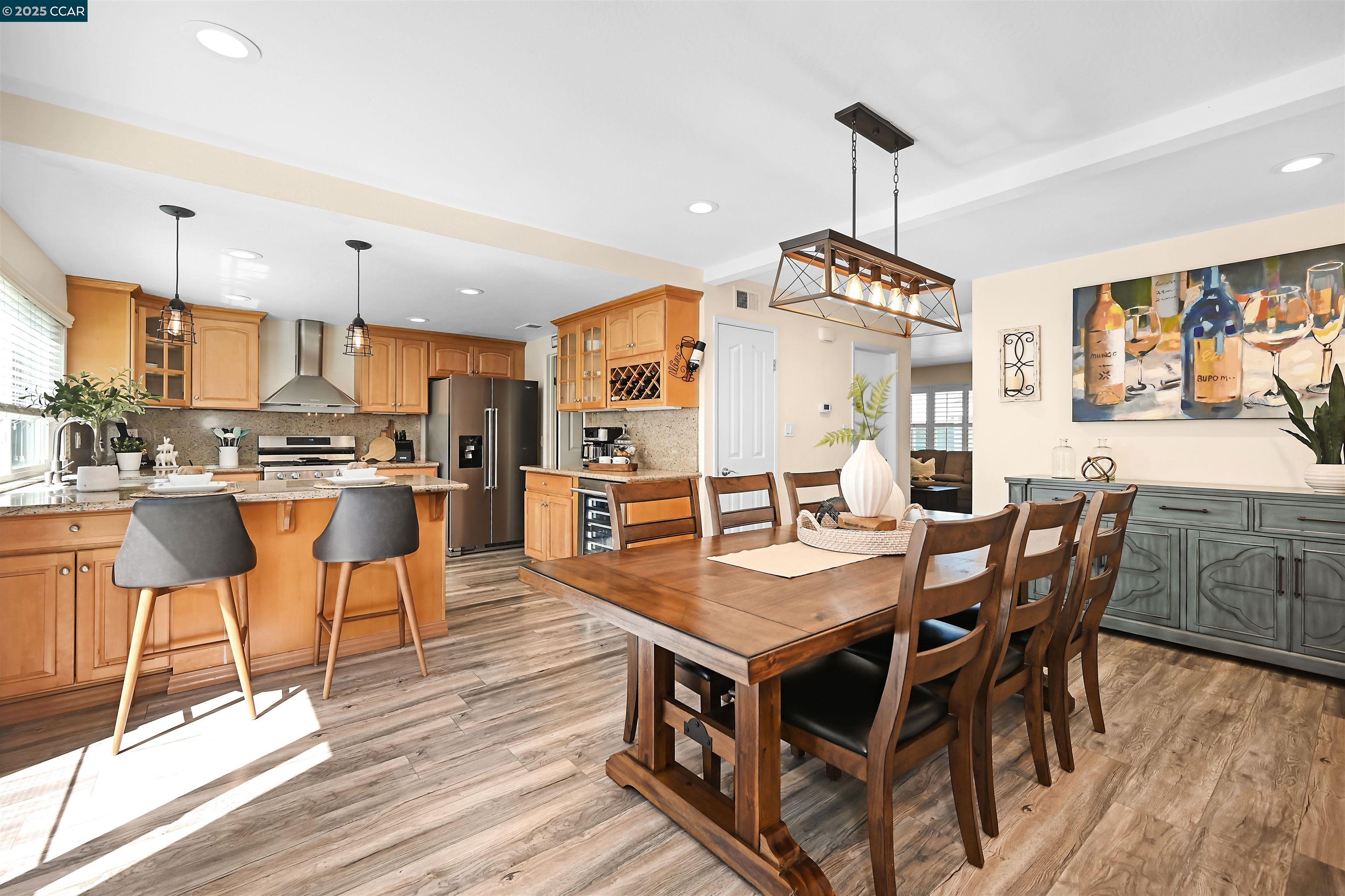 If you are ready to enjoy the magical Danville lifestyle, this inviting FOUR bedroom townhome located in the popular Greenbrook neighborhood is a great place to start! The gorgeous remodeled kitchen features gas stove, wine fridge, large pantry and opens to a spacious eating area. From the updated baths to the beautifully finished 2 car garage, you will LOVE the trending finishes throughout. Luxury vinyl plank floors downstairs, wooden shutters, custom stair banister, private patio, upgraded lighting and 1,717 square feet of living space - a great price point for so much! One bedroom used as craft room - closet easily replaced. Enjoy 2 community pools, tennis, pickleball and acres of greenbelts. Conveniently located close-in to charming downtown Danville, award-winning schools, nature and parks. Easy access to the ironhorse trail and a fantastic commute location.