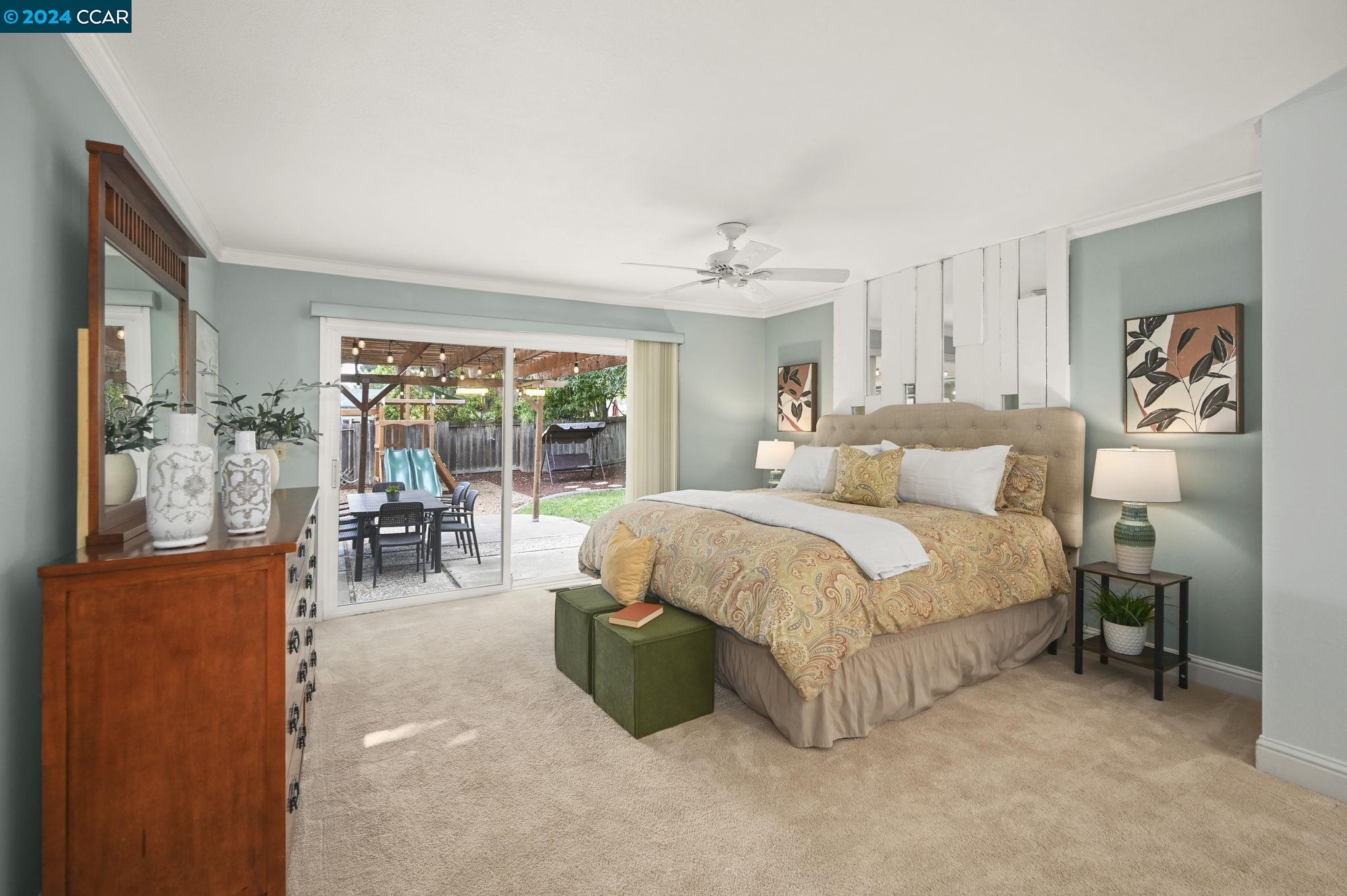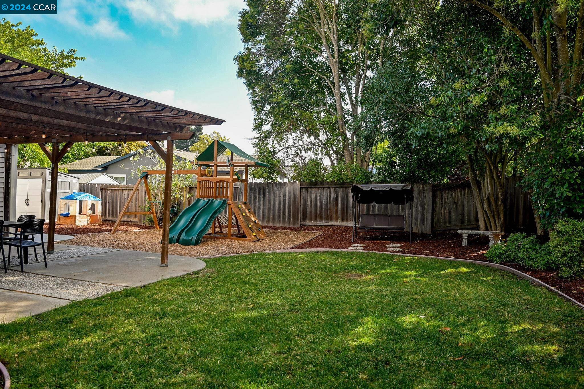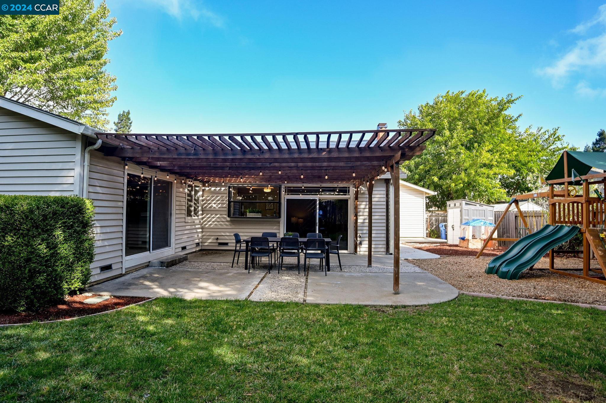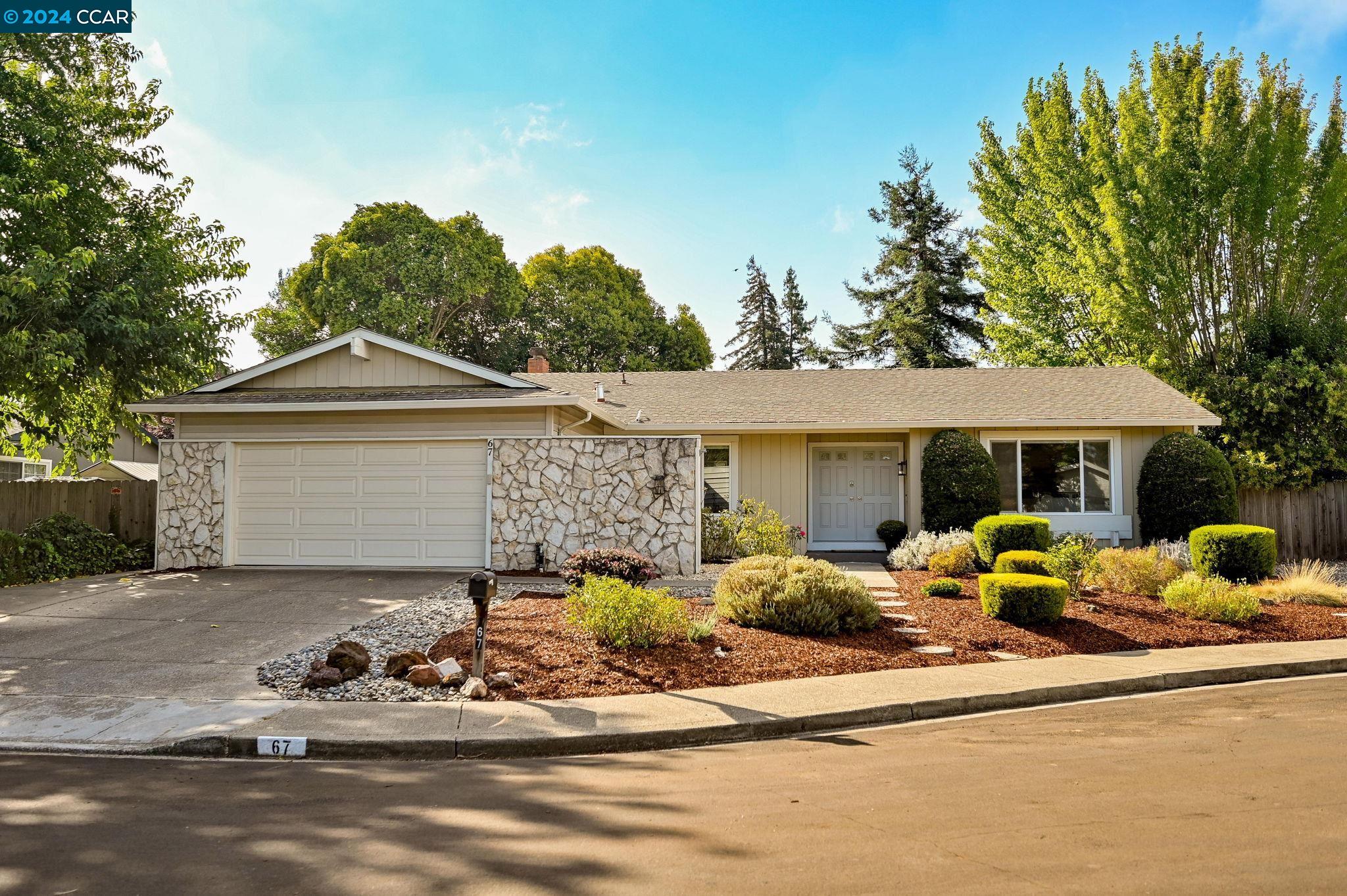 67 Calistoga Court combines the best of indoor and outdoor living in charming Danville. This bright single-story home offers an inviting blend of comfort and style. Nestled in the Greenbrook area on a great cul-de-sac location, this home boasts 4 bedrooms on a private, flat, .23/acre lot. As you enter, you'll be greeted by an open foyer, flanked by the dining room and spacious living room space. The kitchen is open to a separate family room which offers a wall of windows highlighting the large backyard. Relax and enjoy the wonderful outdoor living space - featuring mature landscaping, a spacious shaded patio, plus a huge side yard with storage shed. The primary bedroom suite also offers a sliding door to the back patio. Three additional bedrooms provide plenty of space for living, guests or a home office. Indoor laundry room with storage. Attached 2 car garage with side yard access. No HOA dues in Danville South. You will love the convenient location close to shopping, restaurants, award-winning SRVUSD schools, beautiful downtown Danville and the San Ramon City Center. Enjoy an easy commute to 680 and BART. Seize this opportunity to live the idyllic Danville lifestyle at 67 Calistoga Court: Welcome Home!